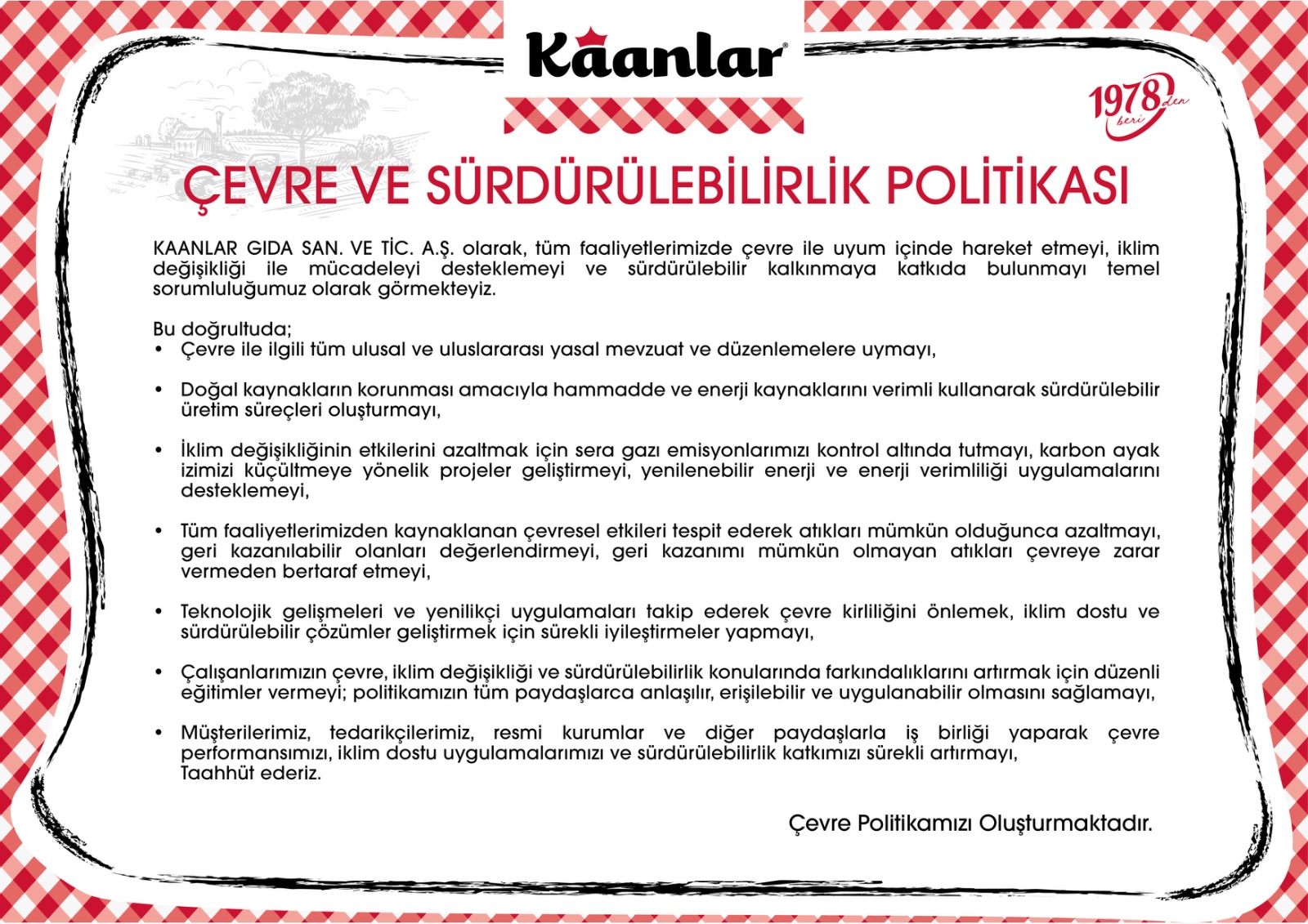 Çevre ve Sürdürülebilirlik Politikası